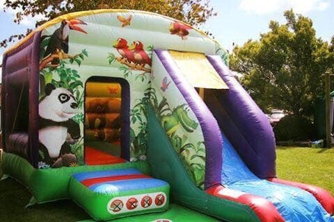 If you're looking for a castle with the added benefit of a slide to keep the kids entertained then this one is what you are looking for. With a slide height of 5ft and a significant bouncy space inside of the box unit, your kids will have endless fun on this inflatable. With its wonderful jungle theme hosting lovely animals and such, this castle can fit nicely into any event, whether it be their special birthday or more of a corporate event.
