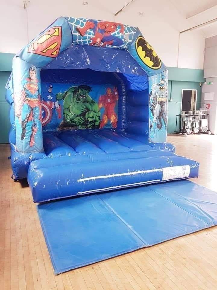 Superheroes Bouncy castle new for 2020 only at Solihull, including Batman, Spiderman, The Hulk this bouncy castle is one our most popular castles perfect for all occasions only at Solihull Inflatables. 12x12 comes with rain cover as do all our castles.